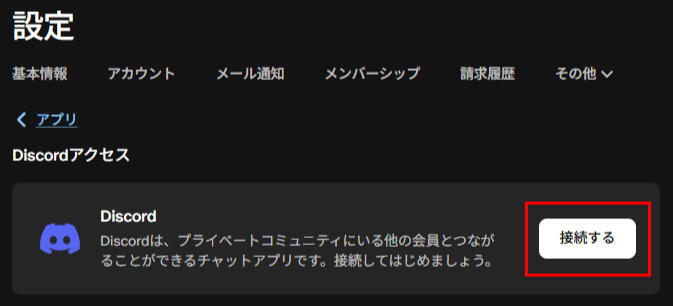 [その他] - [接続中のアプリ] - [Discord] - [接続する]