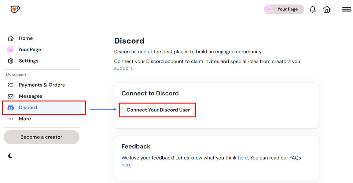 1.You will need to connect your Ko-fi and Discord accounts, so if you do not have an account, please create one first.